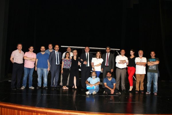 Hacı Sabancı Kültür Merkezi'nde Haziran ayının ilk haftasında sergilenecek yönetmenliğini N. Fırat Demirağ, Aristophanesin Eşek Arıları adlı oyununun (Zenabir) provalarını Baro Başkan'ımız Av. Mengücek Gazi ÇITIRIK ve Baro Yönetim Kurulu üyeleri Av. Veli KÜÇÜK ile Av. Sabahattin GÜMÜŞ birlikte izledi.