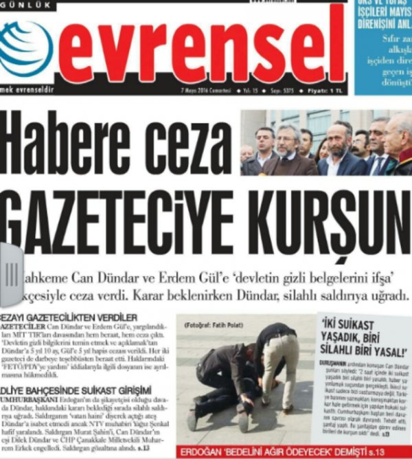 MİT TIR'ları davası için İstanbul Çağlayan Adliyesi'nde bulunan Can Dündar'a silahla ateş açıldı. Basına bu olayın yansımaları