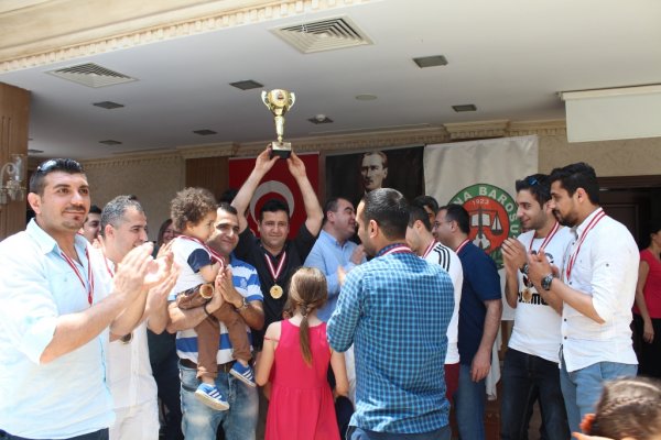 Adana Barosu' na bağlı avukat, stajyer avukat, avukat katipleri, adliye çalışanları arasındaki dayanışmanın arttırılması ve kaynaşmanın sağlanması amacıyla her yıl geleneksel şekilde yapılan ve menfur bir saldırıda kaybetmiş olduğumuz meslektaşımız Av. Savaş BEDİR' in isminin yaşatılması için bu ad altında düzenlenen halı saha futbol turnuvası sonunda ödüller sahiplerini buldu. Yaklaşık üç ay dostça, zevkli, adil ve dürüst oyun kuralları ile örnek olan turnuva sonunda ilk üçe girenlere kupaları Adana Barosu Başkan'ı Av. Mengücek Gazi ÇITIRIK, Baro Başkan Yardımcısı Av. Murat LOĞOĞLU, Baro Sayman Yönetim Kurulu Üyesi Av. Hare Arabacı ÖZDEMİR ve Yönetim Kurulu Üyesi Av. Veli KÜÇÜK'ün de katılımıyla takdim edildi.