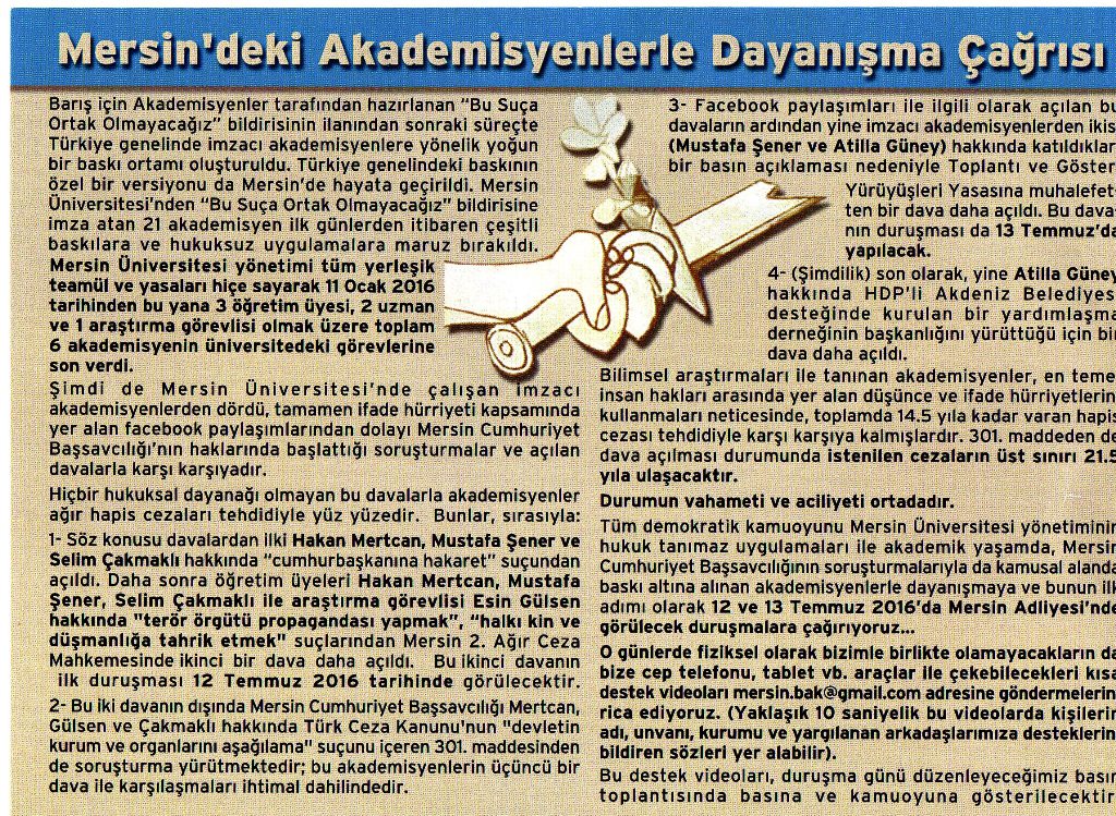 Mersin'deki Akademisyenlerle Dayanışma Çağrısı