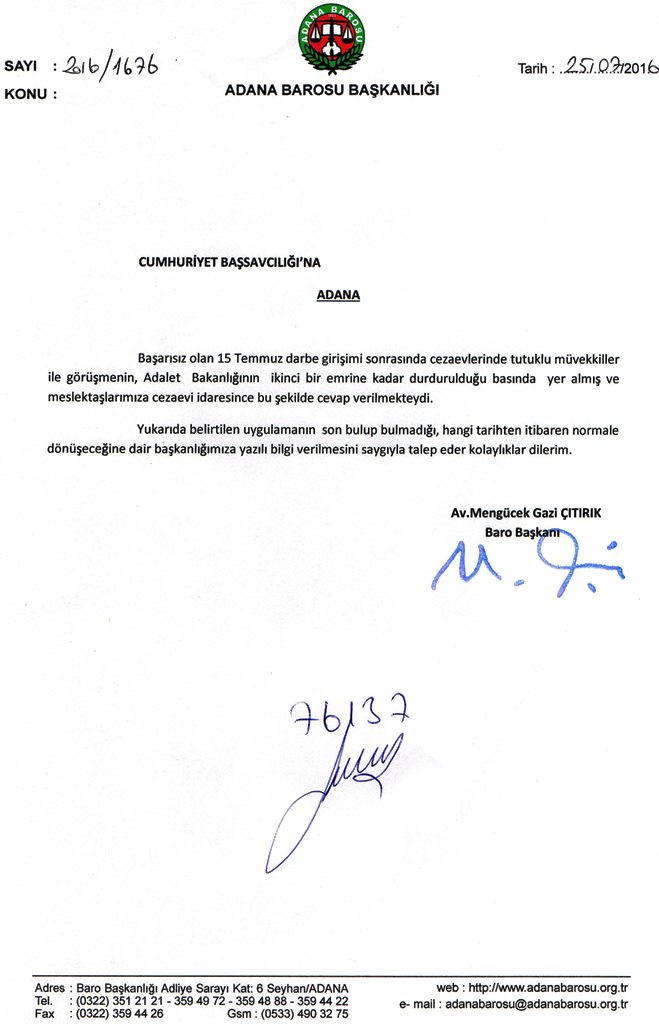 Adana BarosuKomisyonlarCMKKomisyon Başvuru FormuSEMYön. Kur. Top. GündemleriAdli YardımAvukat Hakları MerkeziBaro MeclisiBasında Yer Almış HaberlerMevzuatMeslek İlke ve KanunlarıEtkinlik TakvimiYargıtay KararlarıBilgi BankasıMazeretli Hakim - Savcı ListesiİletişimBaro Hesap Numarası